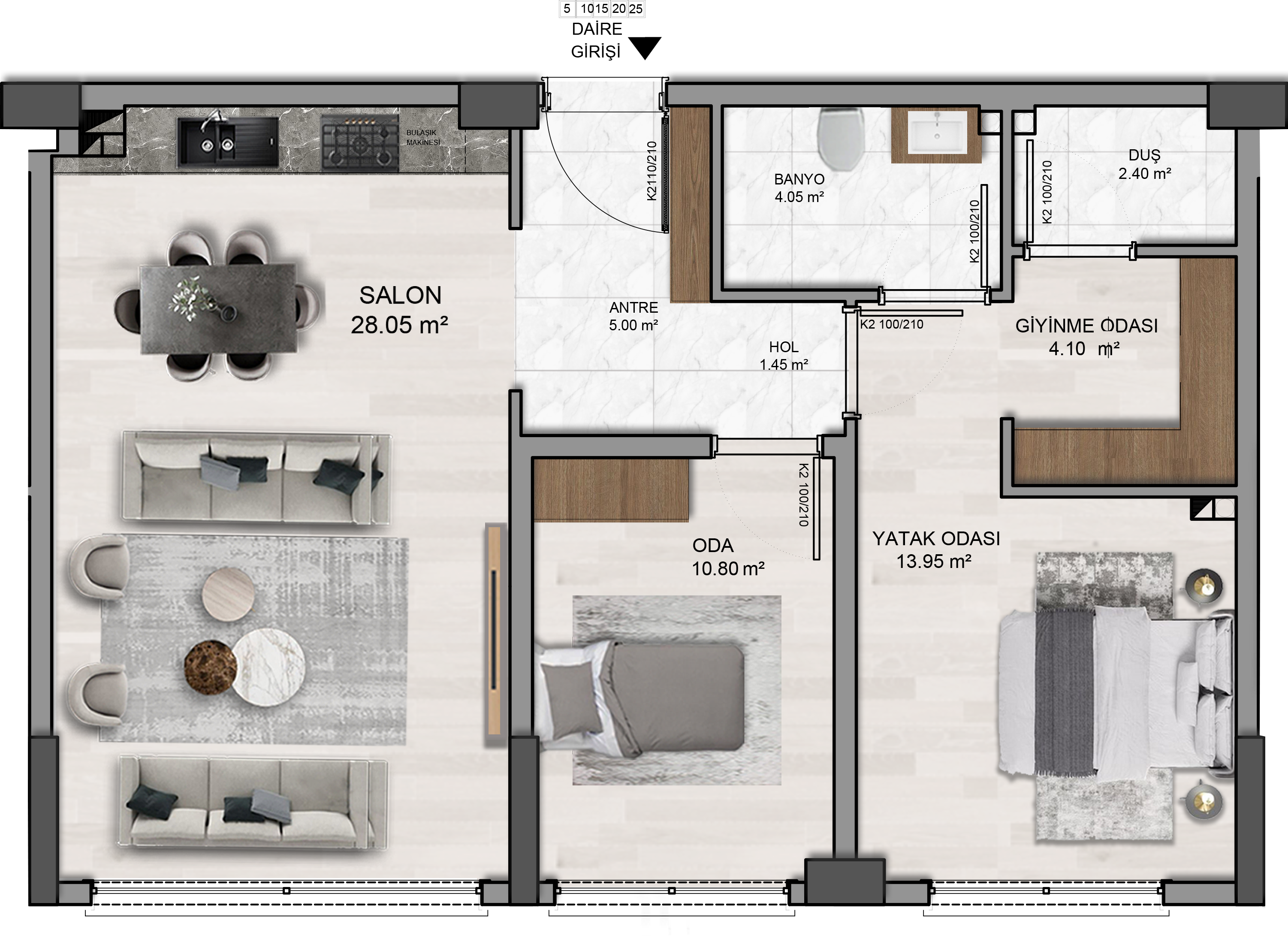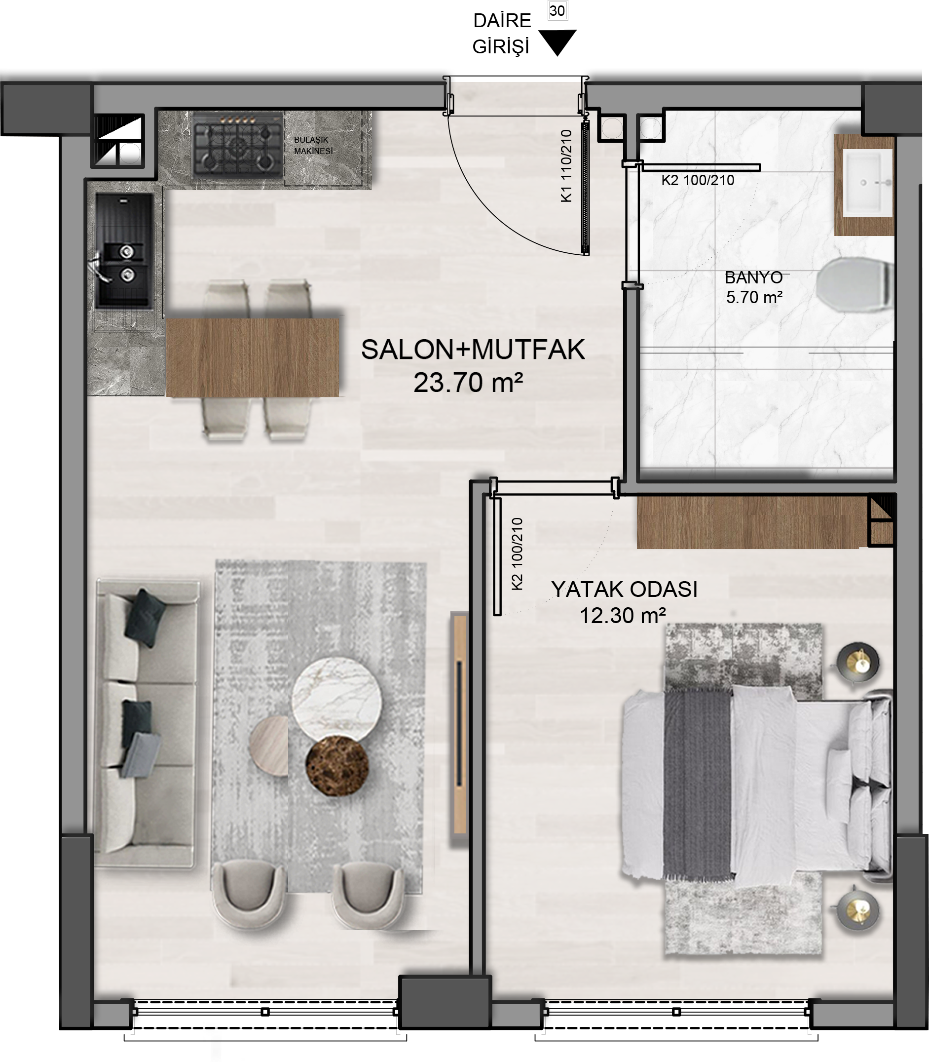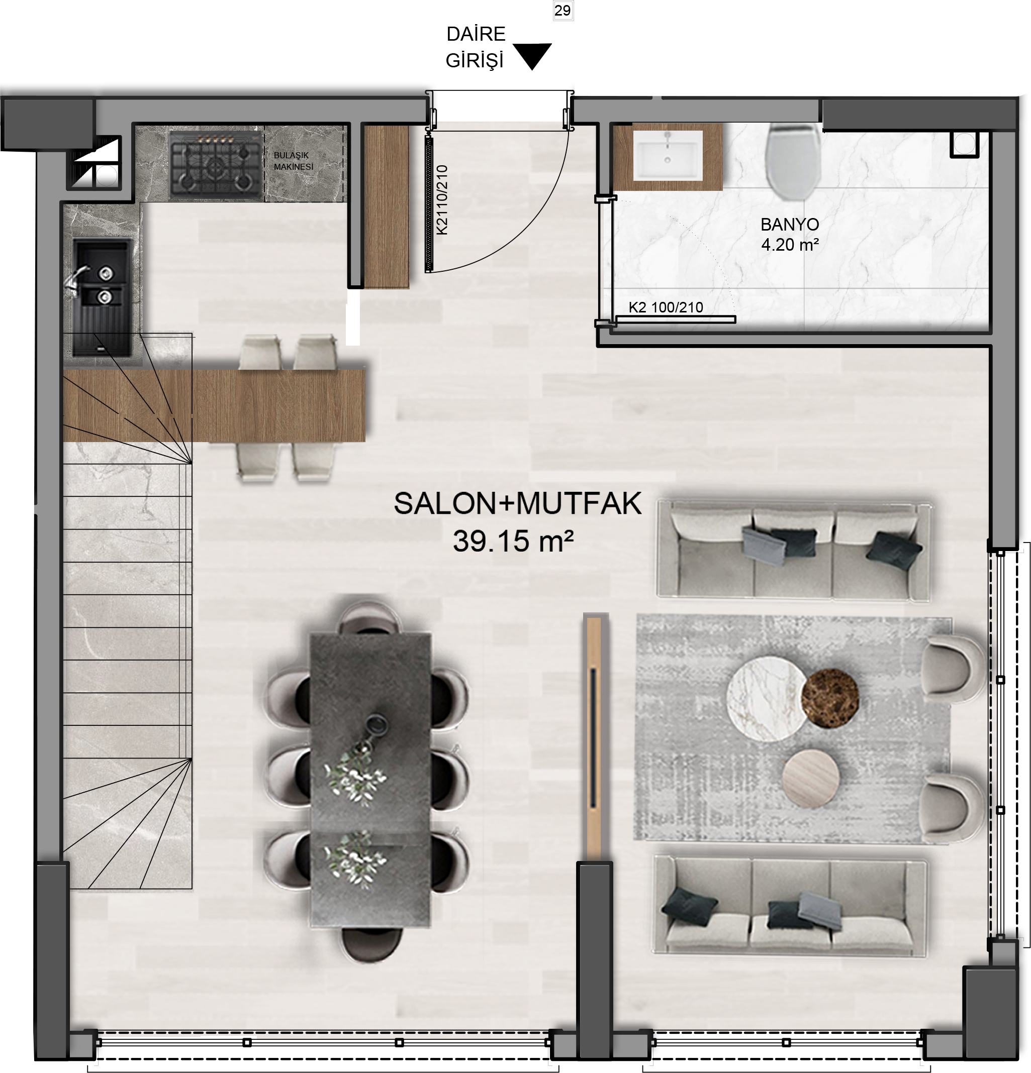 Mimari tasarımında estetik ve fonksiyonelliği ön planda tutan Doğa City Bağdat Projesi, ferah yaşam alanlarıyla kullanıcılarına modern bir yaşamın kapılarını açıyor. Projede yer alan geniş daireler, yüksek tavanlı yapılar ve doğal ışık alan ferah pencerelerle gün boyu aydınlık ve huzurlu bir atmosfer oluşturuyor.